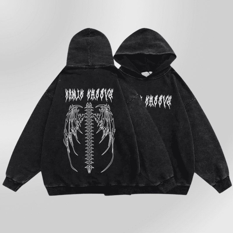 Alternativní černá mikina s kapucí Grunge - Bones