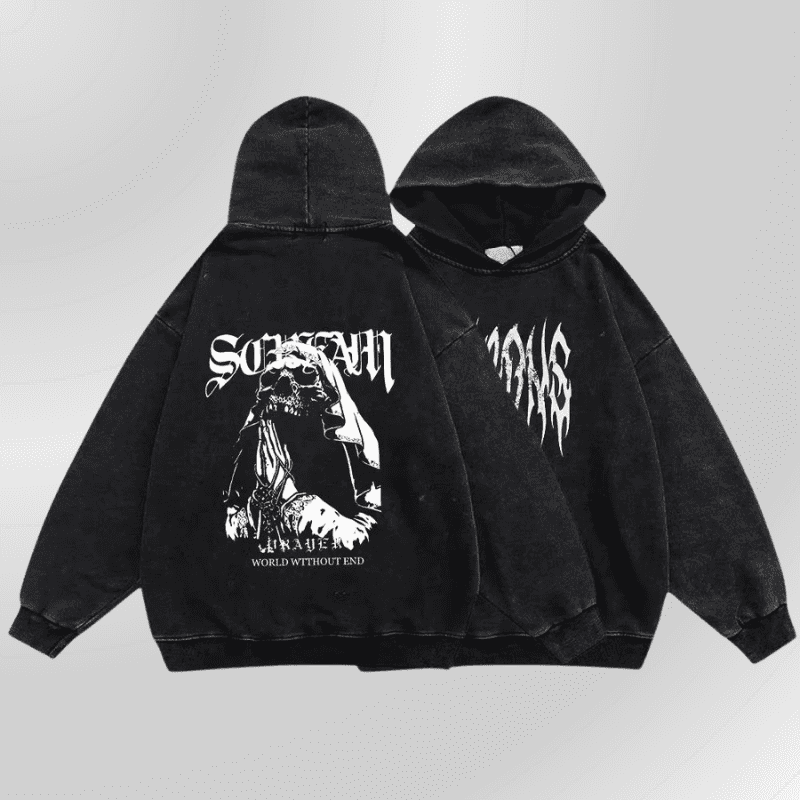 Alternativní černá mikina s kapucí Grunge - Pray