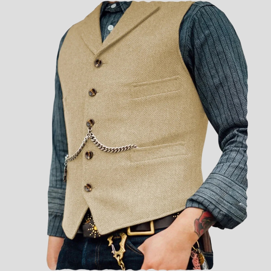 Béžová steampunková vesta s kapsovým řetízkem rybí kostra