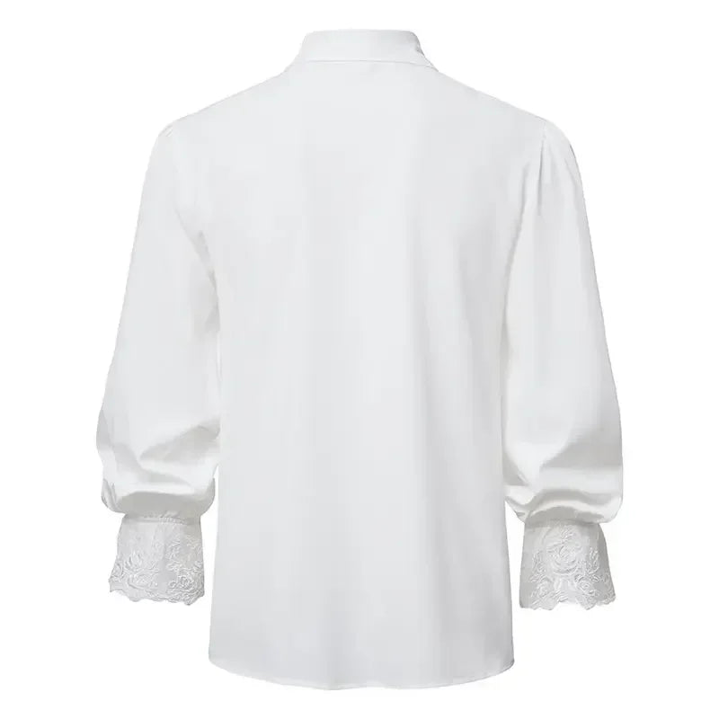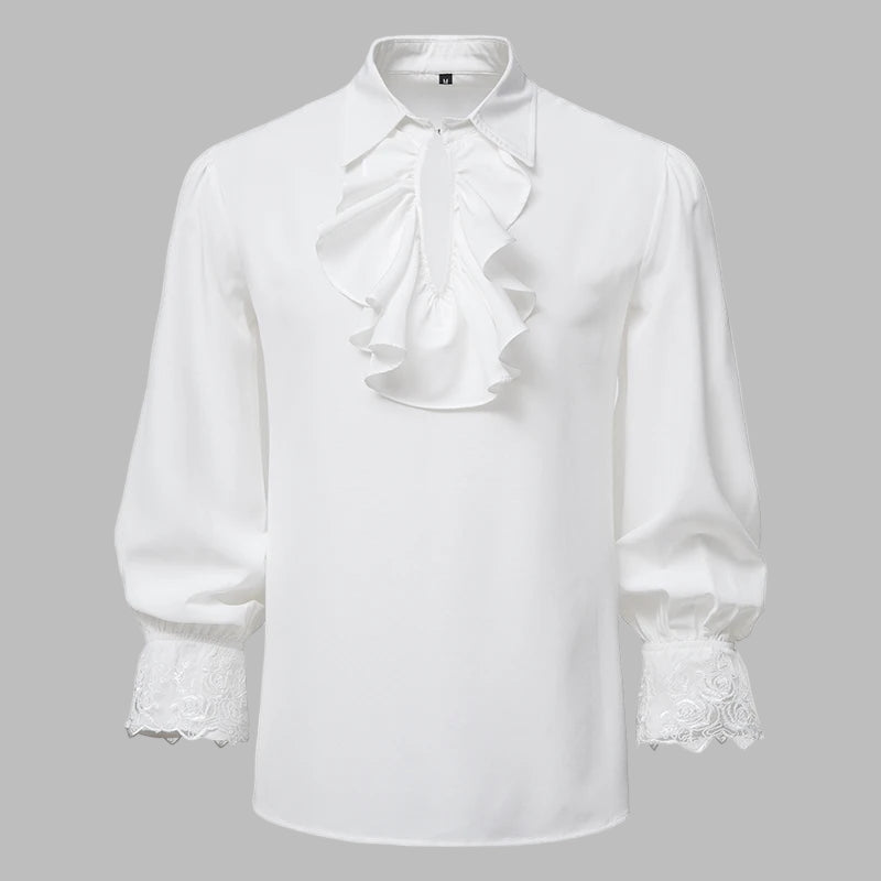 Bílá rocková košile s krajkovými manžetami a žabotem