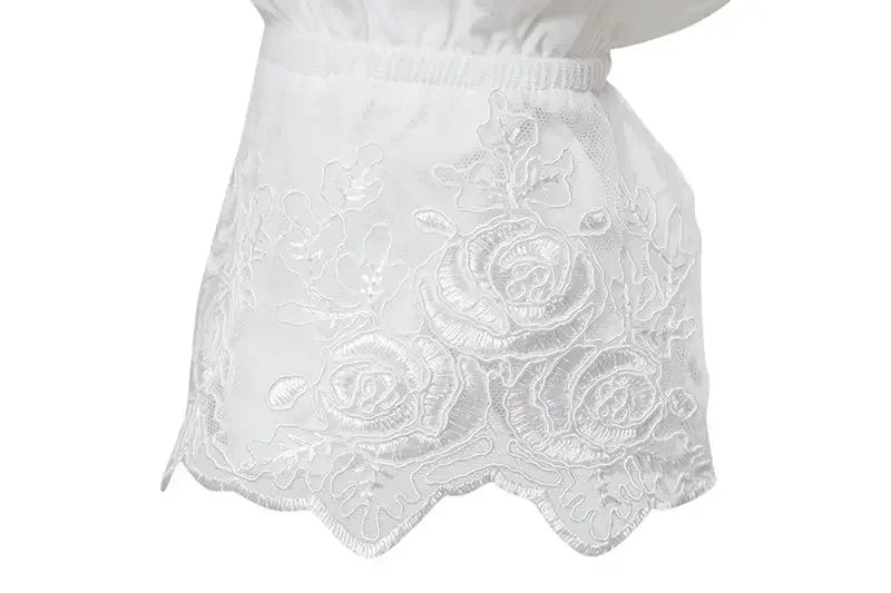 Bílá rocková košile s krajkovými manžetami a žabó