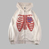 Bílá punk rock mikina na zip s motivem žeber XXL