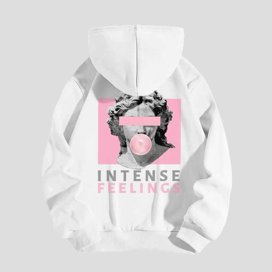 Bílá mikina Pop Art s růžovou grafikou Intense Feelings