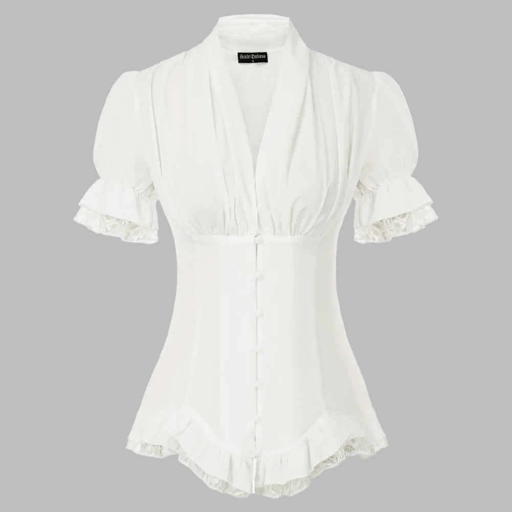 Bílá steampunková halenka s krajkou a krátkým rukávem Zobrazit moznosti