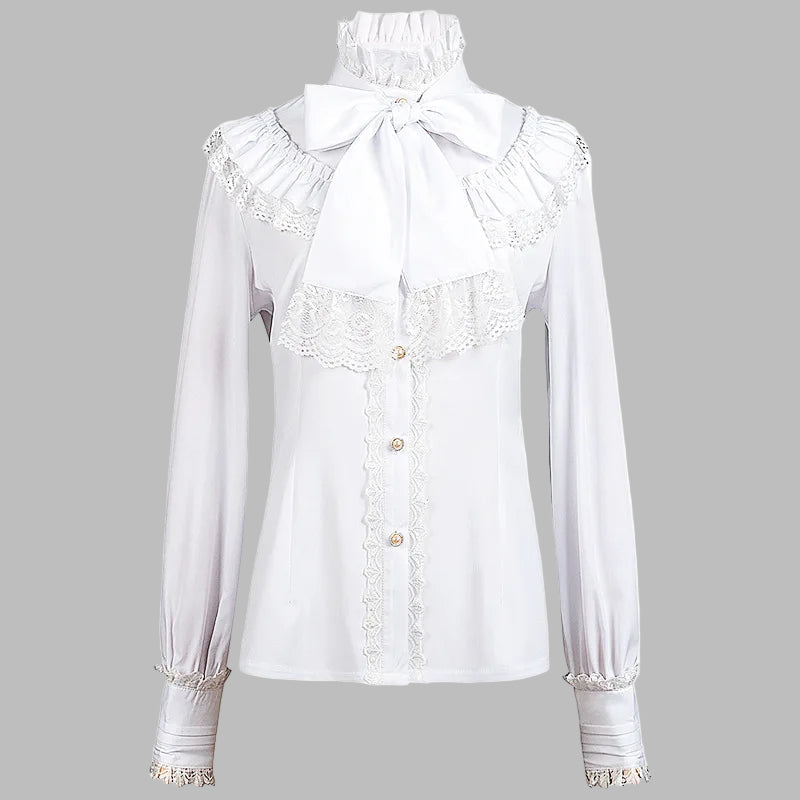 Bílá steampunková halenka s krajkovou aplikací a mašlí