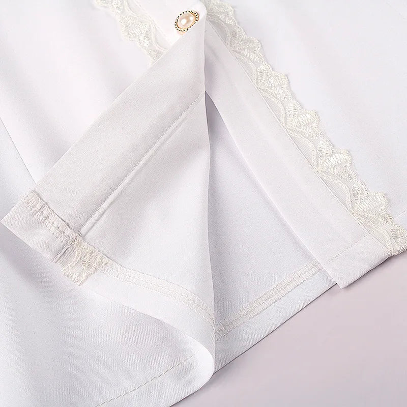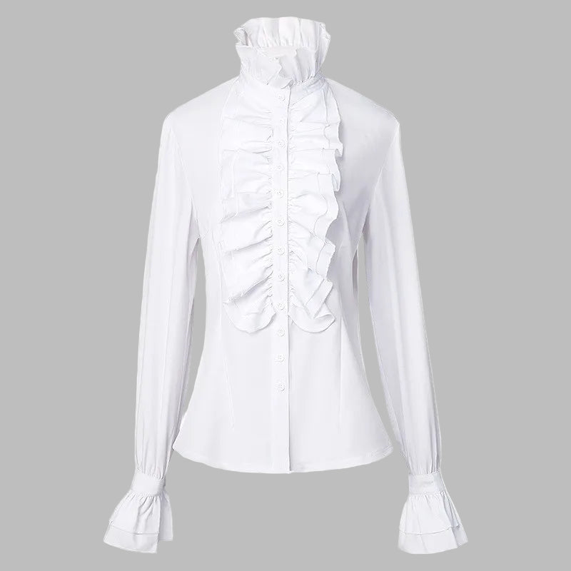 Bílá steampunková halenka s volánkem a nabíranými rukávy
