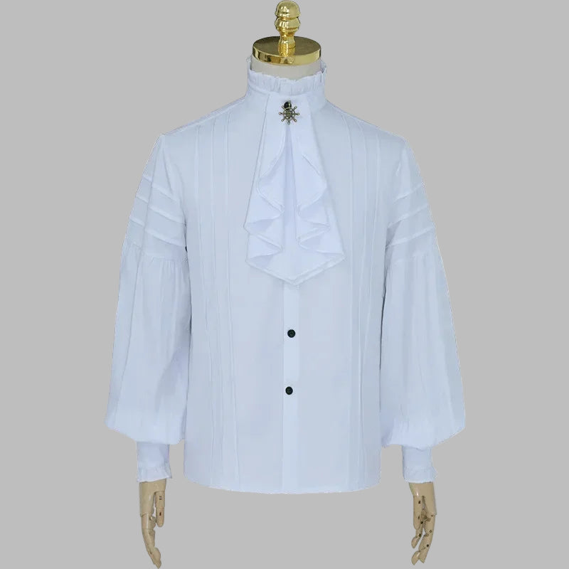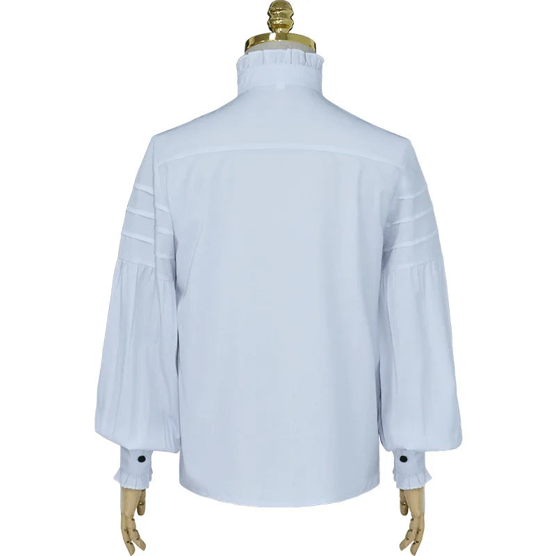 Bílá steampunková košile s vysokým límcem a žabotem