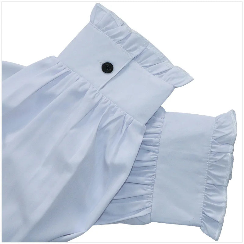 Bílá steampunková košile s vysokým límcem a volánkem