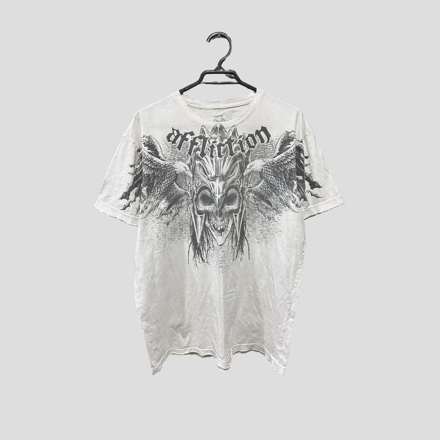 Bílé tričko Affliction s démonickou lebkou 4XL