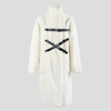 Bílý steampunkový kabát s pásky, dlouhý punk rock styl
