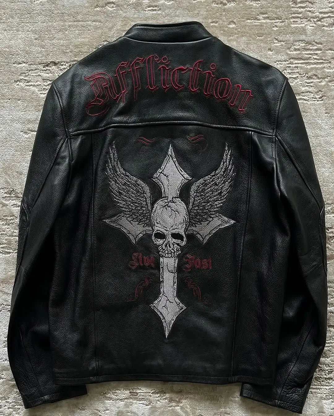 Kurtka Gotycka Czarna Skórzana z Krzyżem