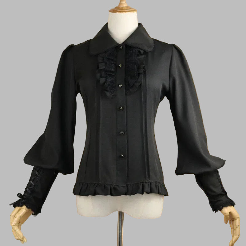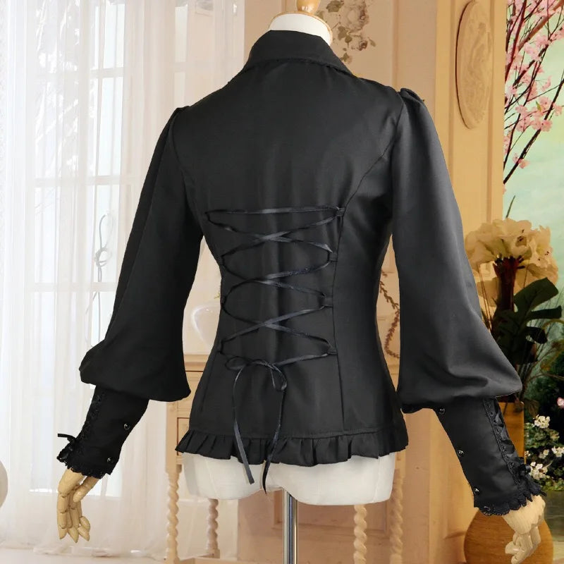 Černá halenka ve stylu metal s volánky a šněrováním rukávů