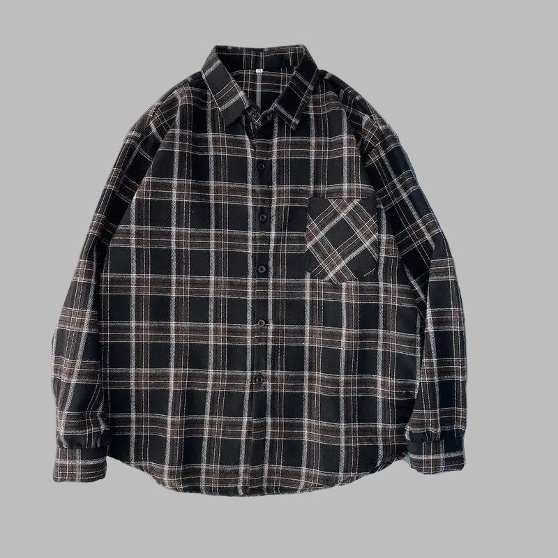 Černá kostkovaná košile Grunge Punk s dlouhými rukávy