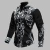 Černá metalová košile s ornamenty a vzory s dlouhým rukávem