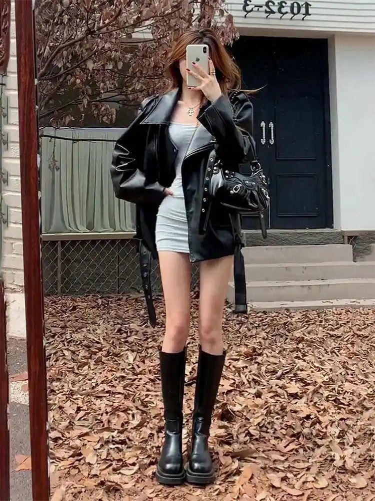 Černá kožená bunda goth punk metal oversize ramoneska Zobrazit moznosti