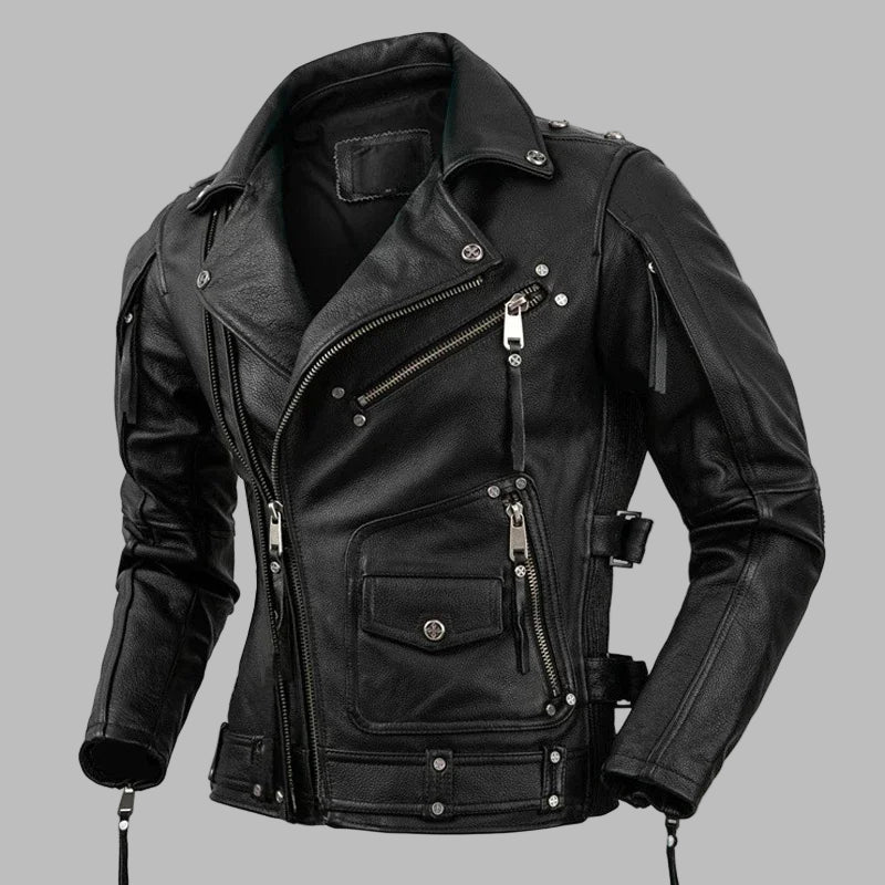Černá kožená punk rock metalová bunda Ramoneska 8XL