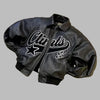 Černá kožená punková bunda s bílými potisky oversize Zobrazit moznosti