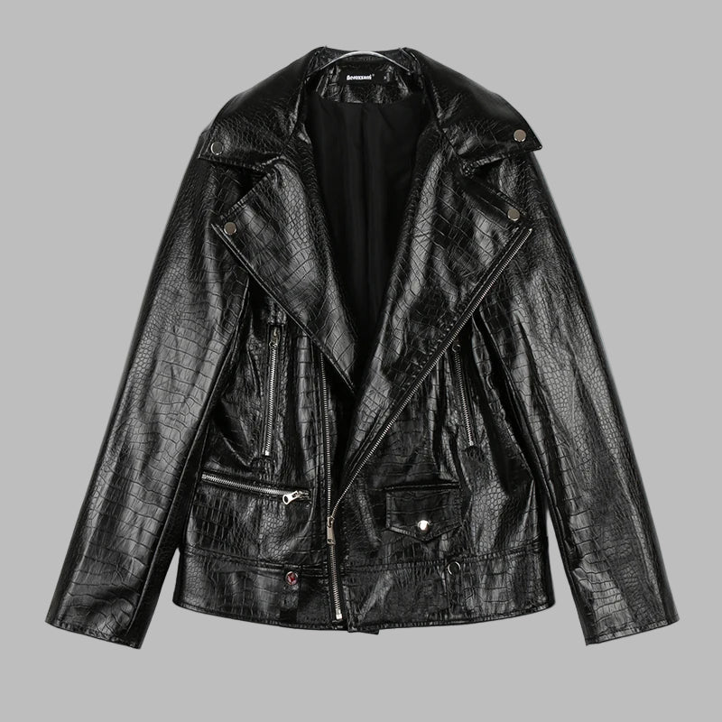 Černá kožená goth metal punk bunda ramoneska 5XL