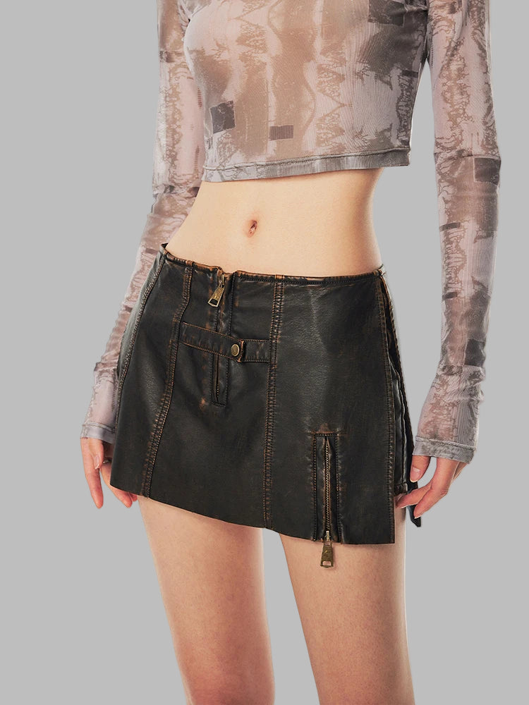 Černá kožená punková mini sukně se zipy Zobrazit moznosti