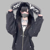Černá oversize mikina Jirai Kei s ušima a krajkou