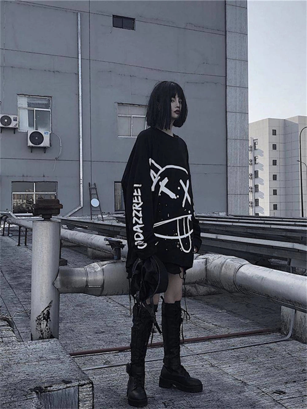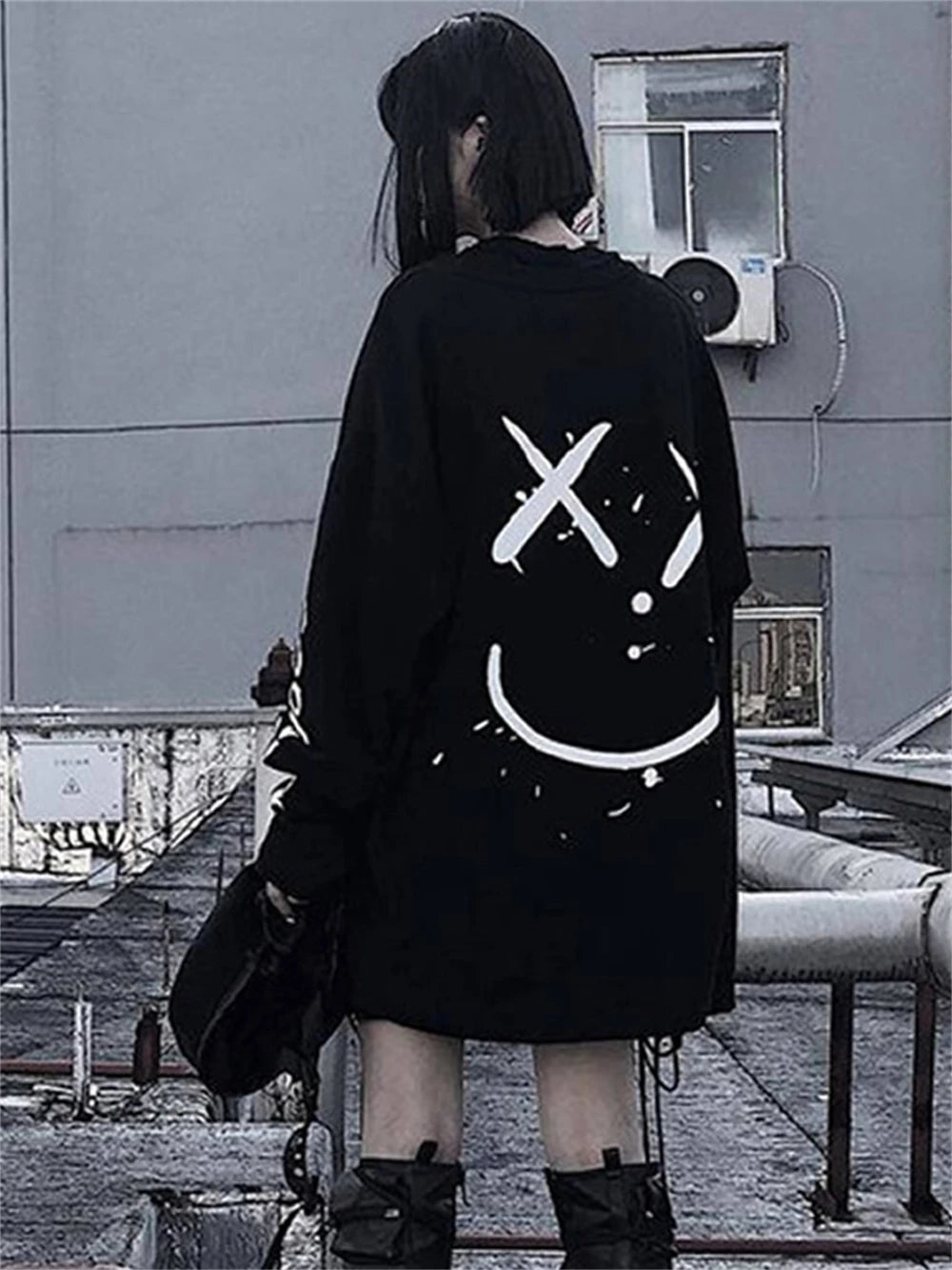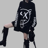 Černá oversize punk mikina s bílým potiskem obličeje