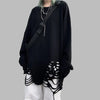 Černá oversize mikina s dírami ve stylu punk rock grunge