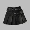 Černá plisovaná punková sukně s kovovými pásky a cvočky L