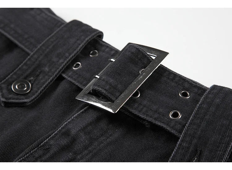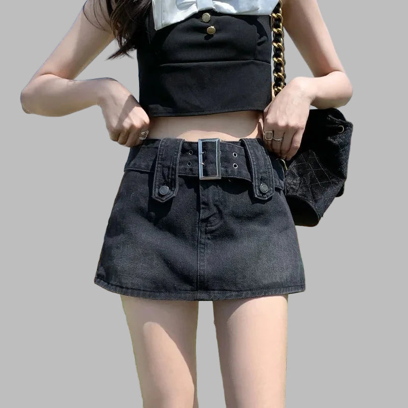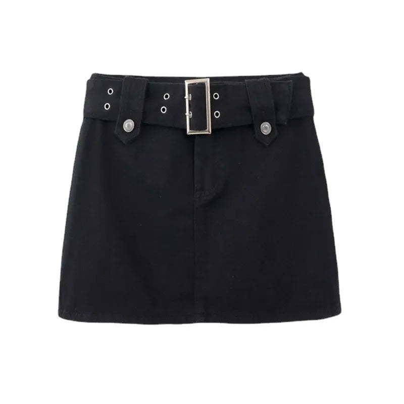 Černá punková džínová sukně s kovovým páskem Zobrazit moznosti