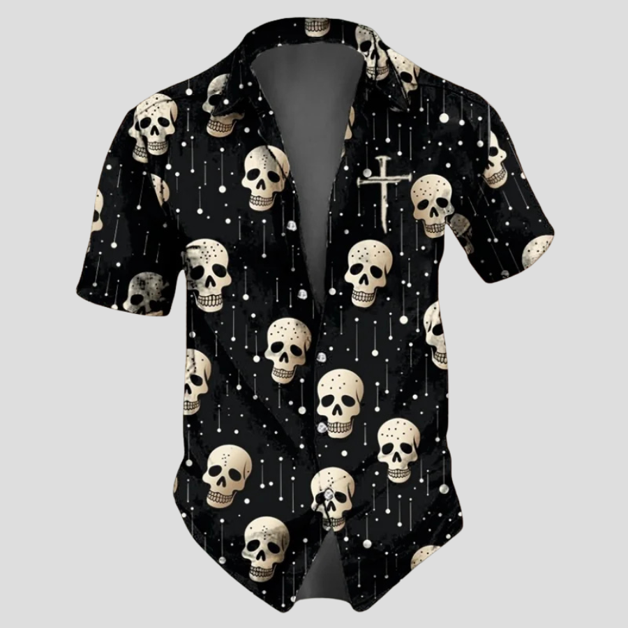 Černá punková košile s lebkami a kříži, krátký rukáv Zobrazit moznosti