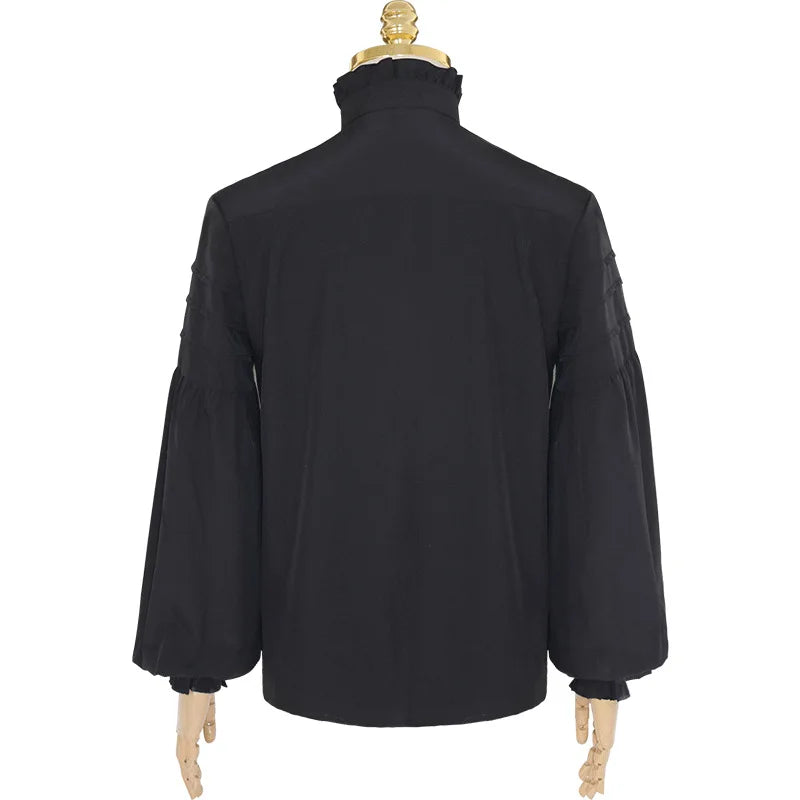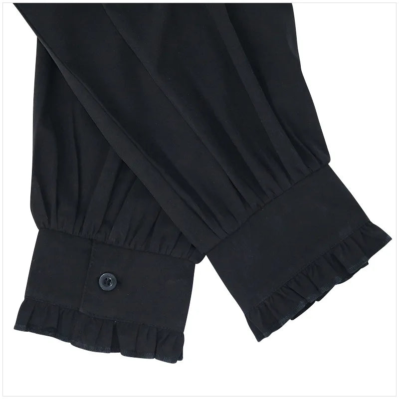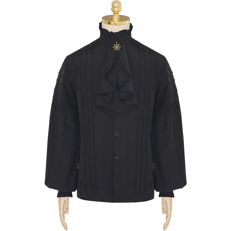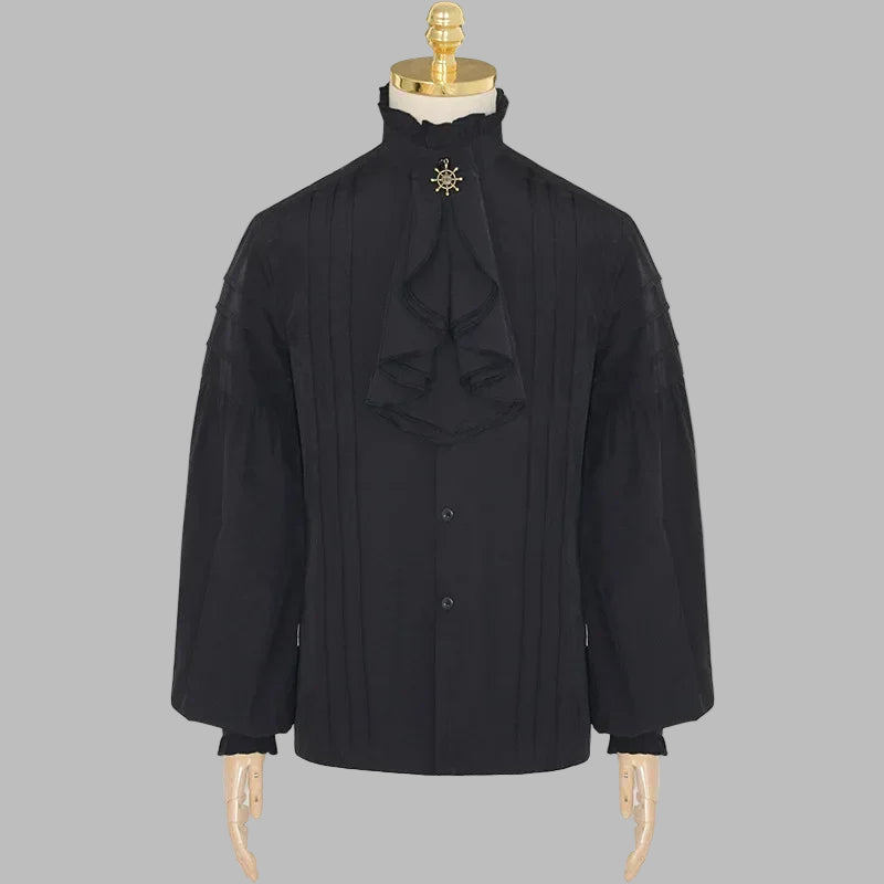 Černá steampunková košile s volánkem a zlatou broží