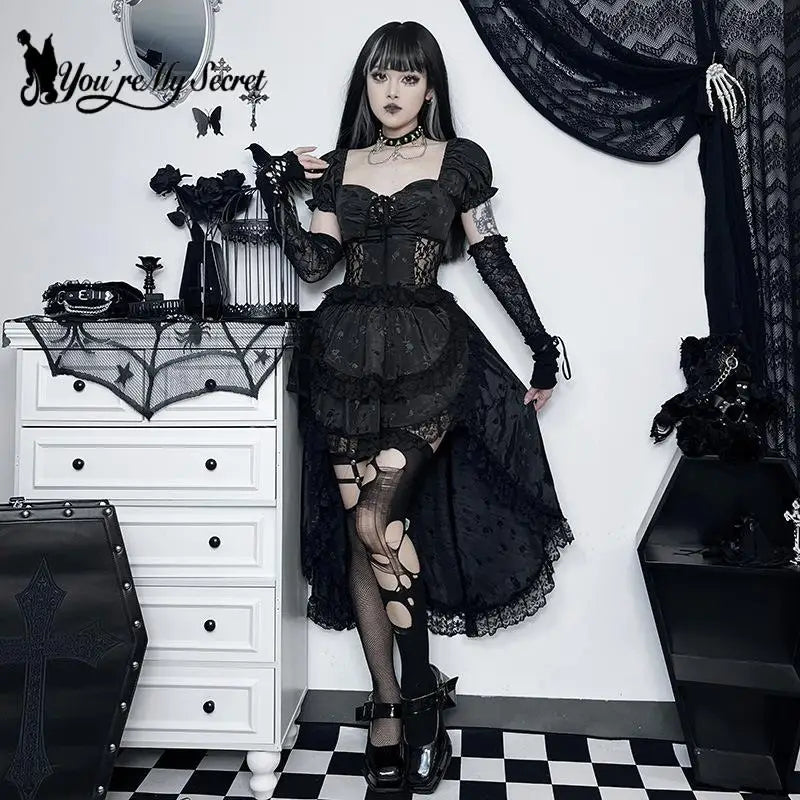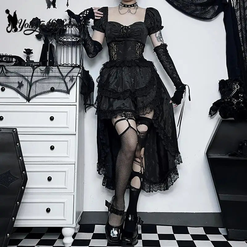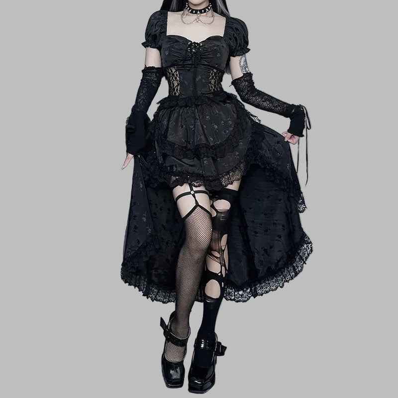 Černé asymetrické krajkové gotické punk šaty Zobrazit moznosti
