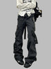 Černé gotické punkové cargo kalhoty s volnými kapsami a řetězy unisex Zobrazit moznosti