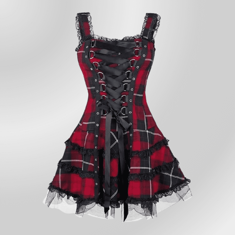 Černé gotické šaty s kostkovaným vzorem Zobrazit moznosti