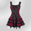 Černé gotické rockové šaty s modrým skotským tartanem S