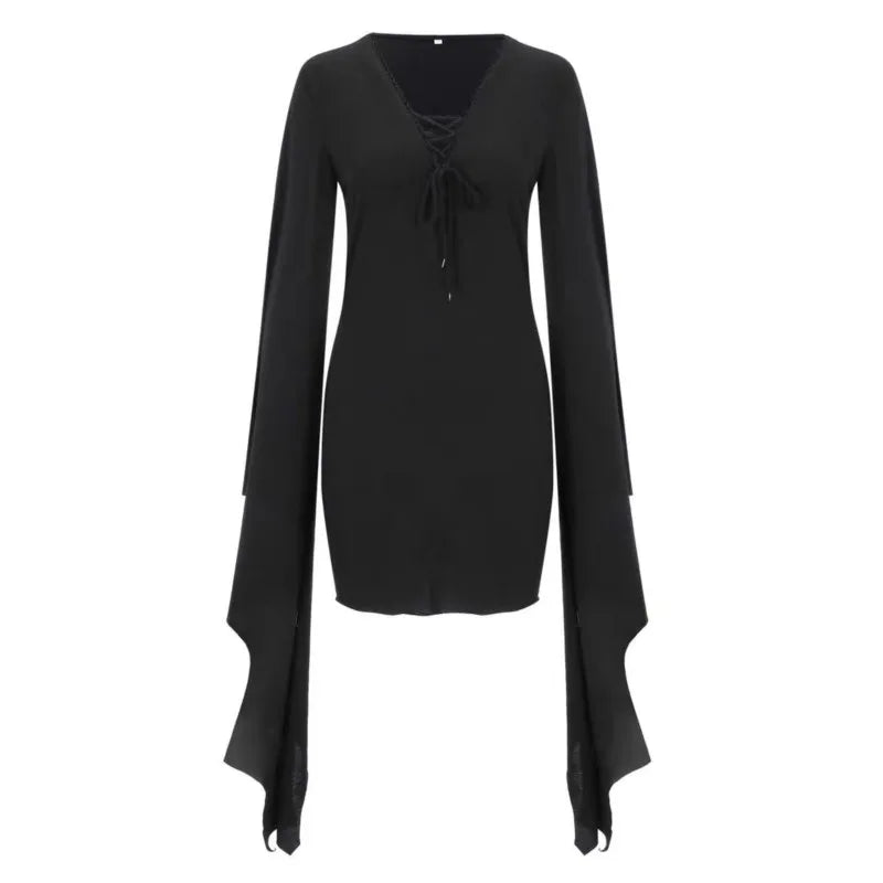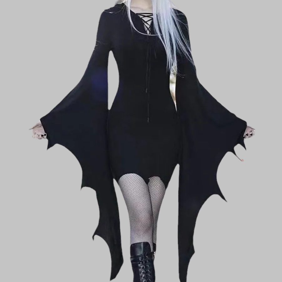 Černé gotické šaty s netopýřími rukávy ve tvaru křídel