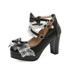 Černé podpatky Jirai Kei s mašlemi a perlami