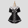 Černé námořnické šaty s bílou mašlí Jirai Kei