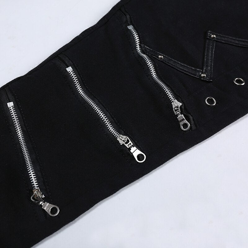 • Vpletené ozdobné pásky z ekologické kůže po stranách kalhot