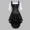 Černé punk rock šaty s koženým korzetem a asymetrickou krajkovou sukní 4XL
