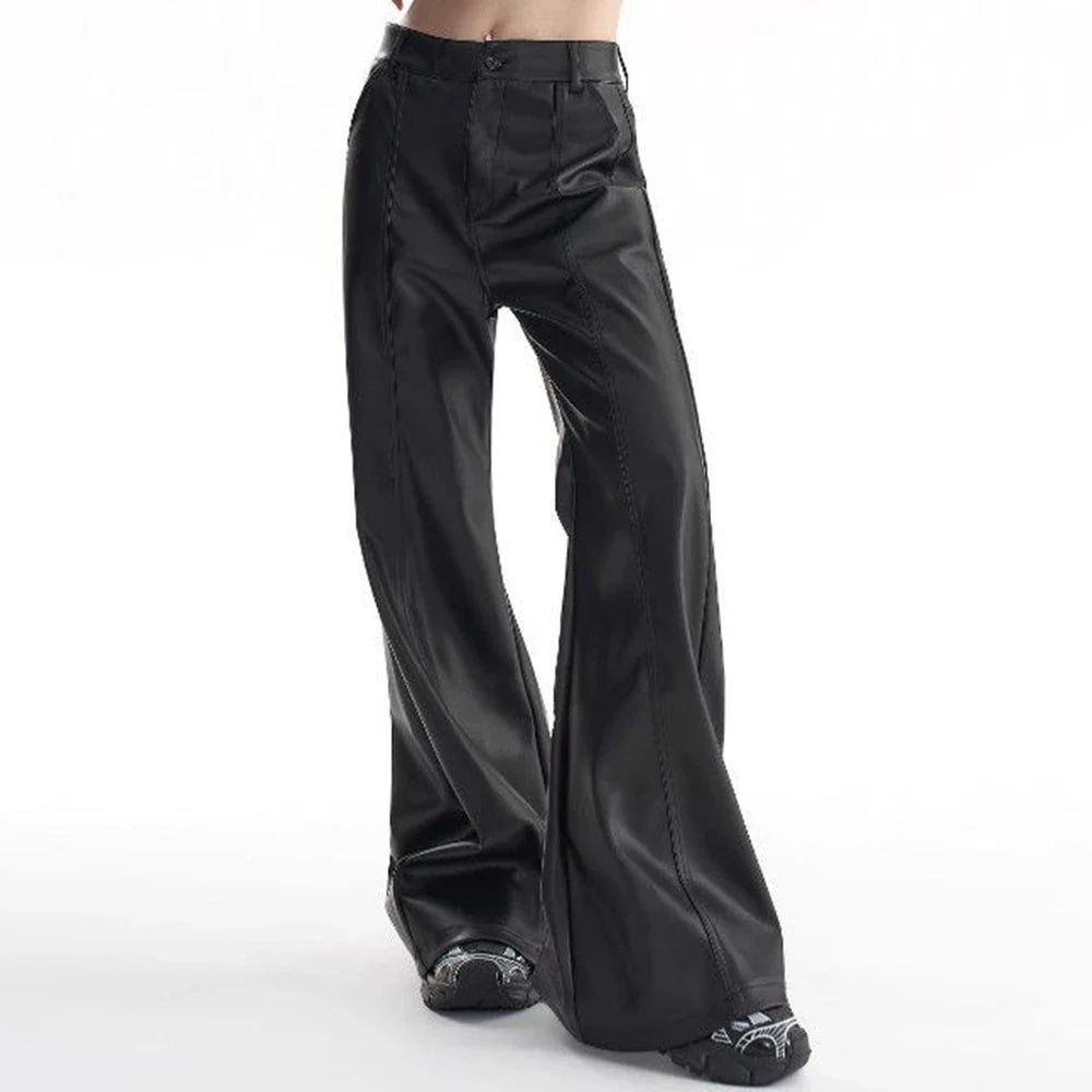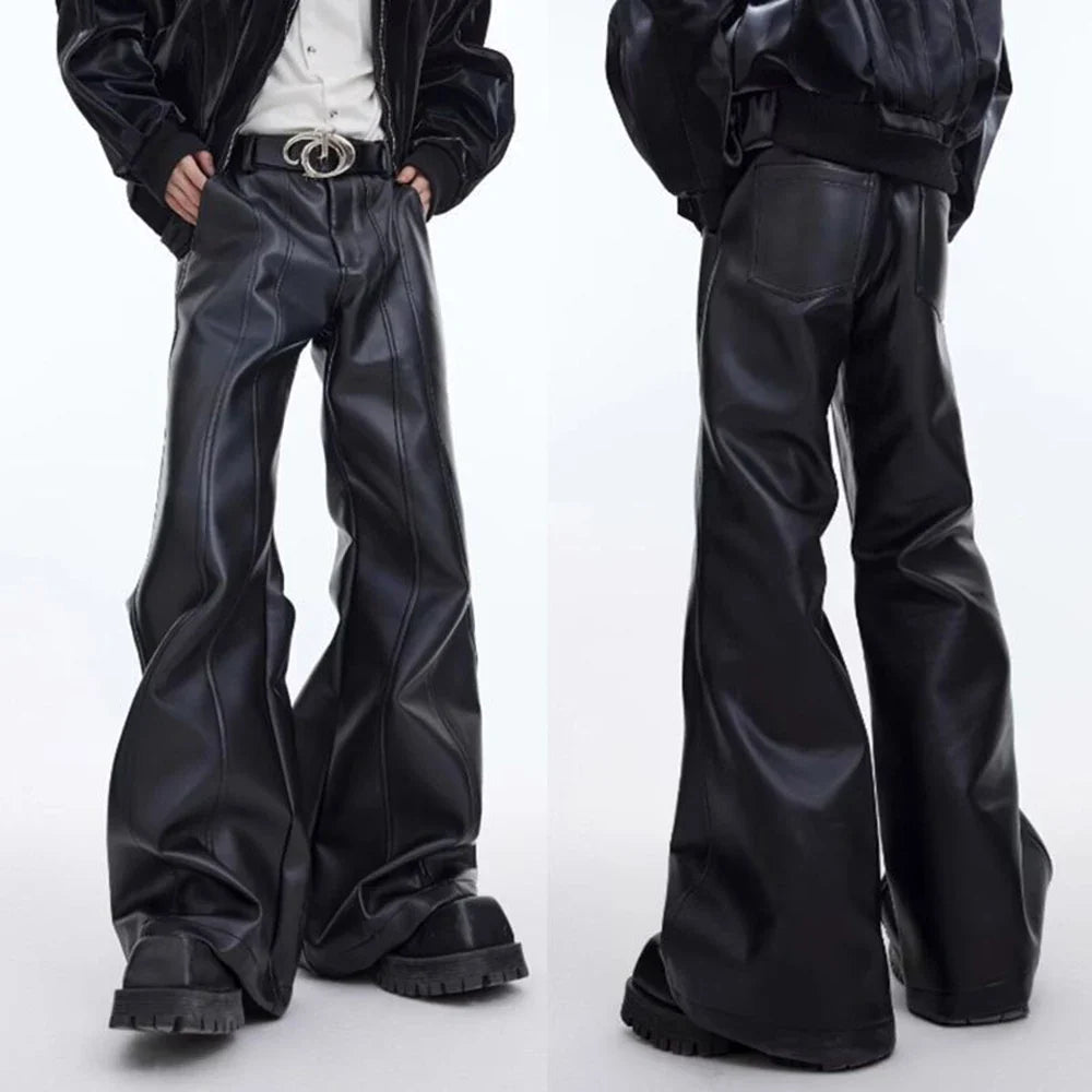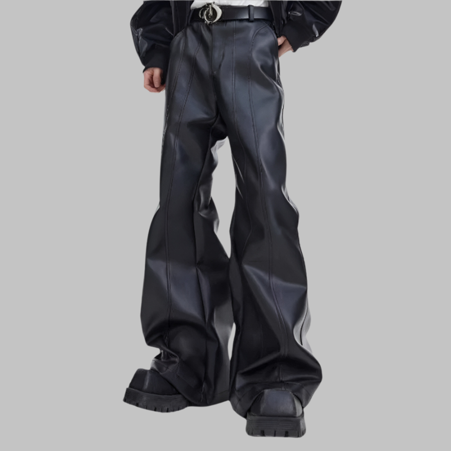Černé rozšířené kalhoty z ekologické kůže ve stylu punk pro muže – Metal