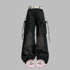 Černé široké punkové kalhoty s cargo kapsami a odřeným vzhledem