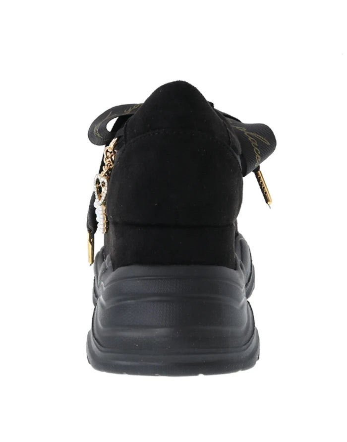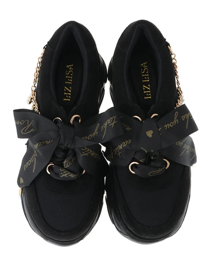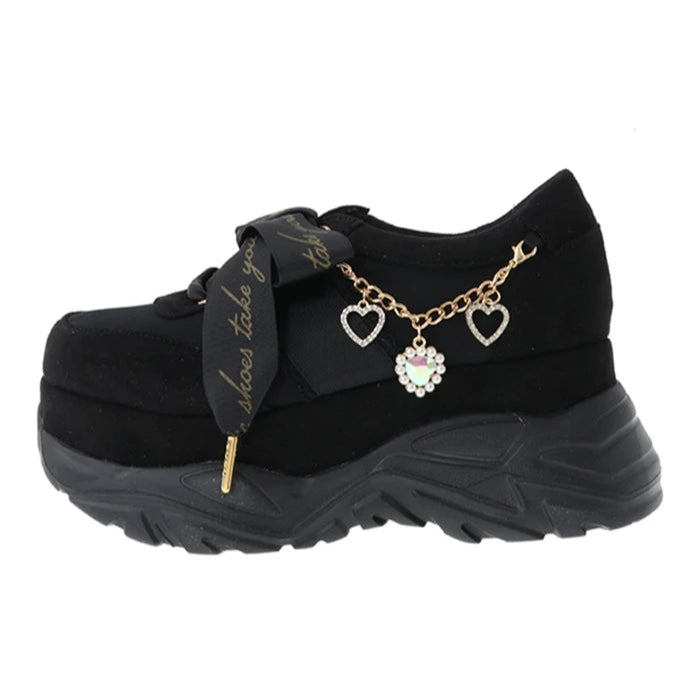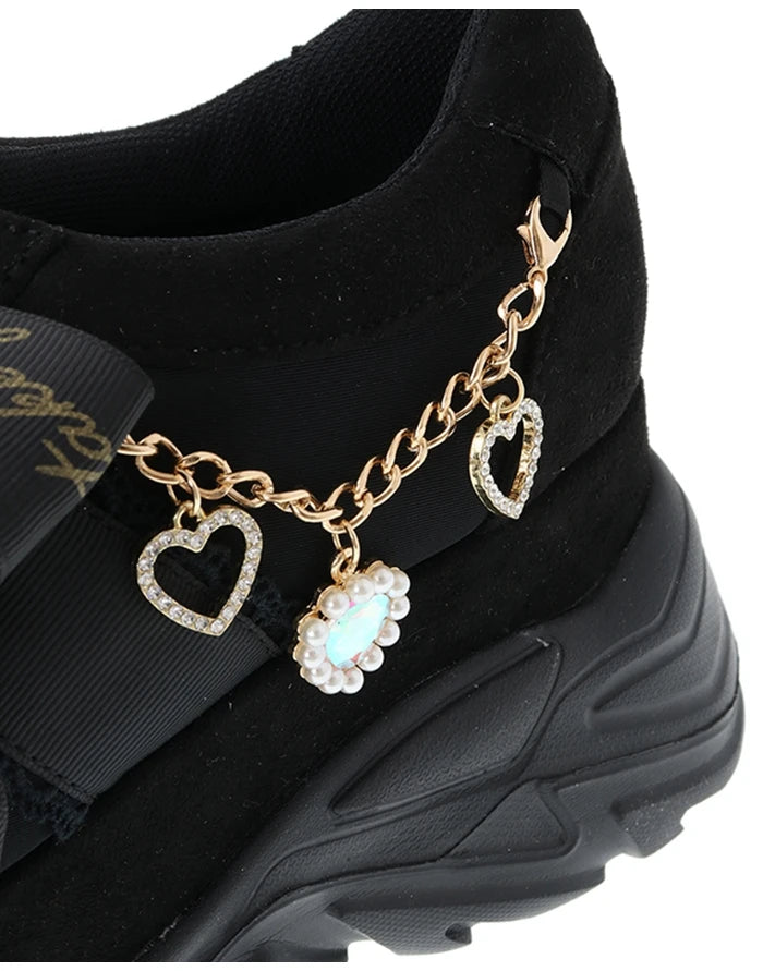 Černé tenisky Jirai Kei na platformě s mašlí a přívěsky