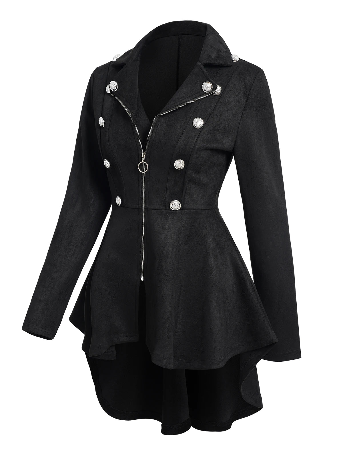 Černý dámský gotický kabát s rozšířeným střihem, knoflíky a zipem XXL