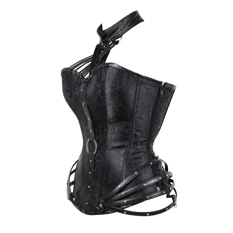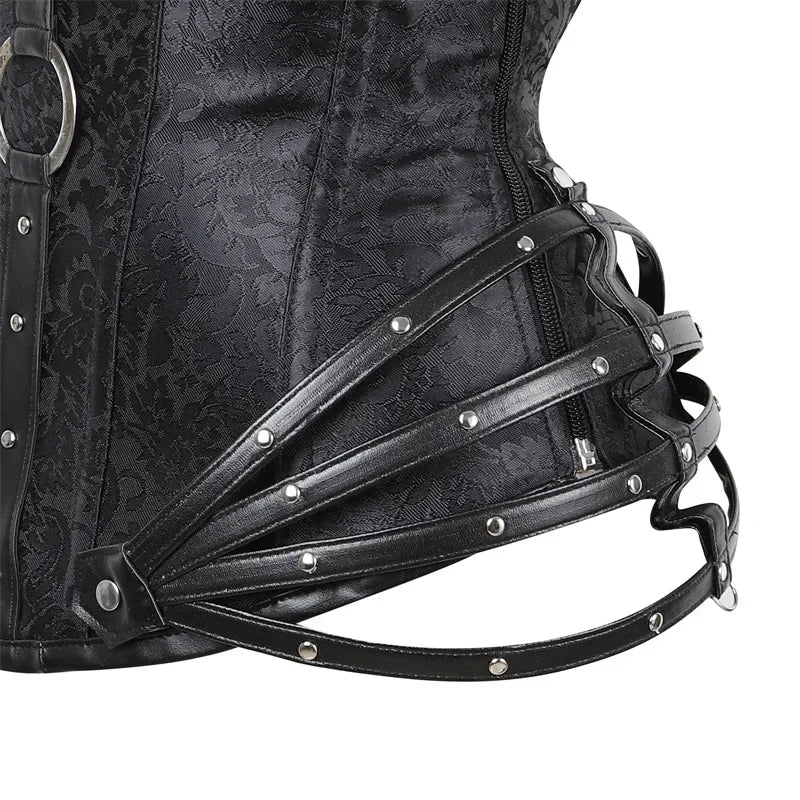 Gotický kovový korzet s pásky a cvočky černý punk rock