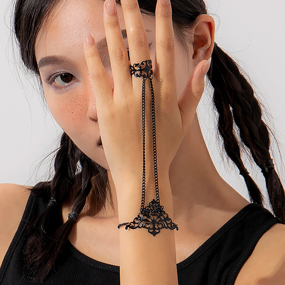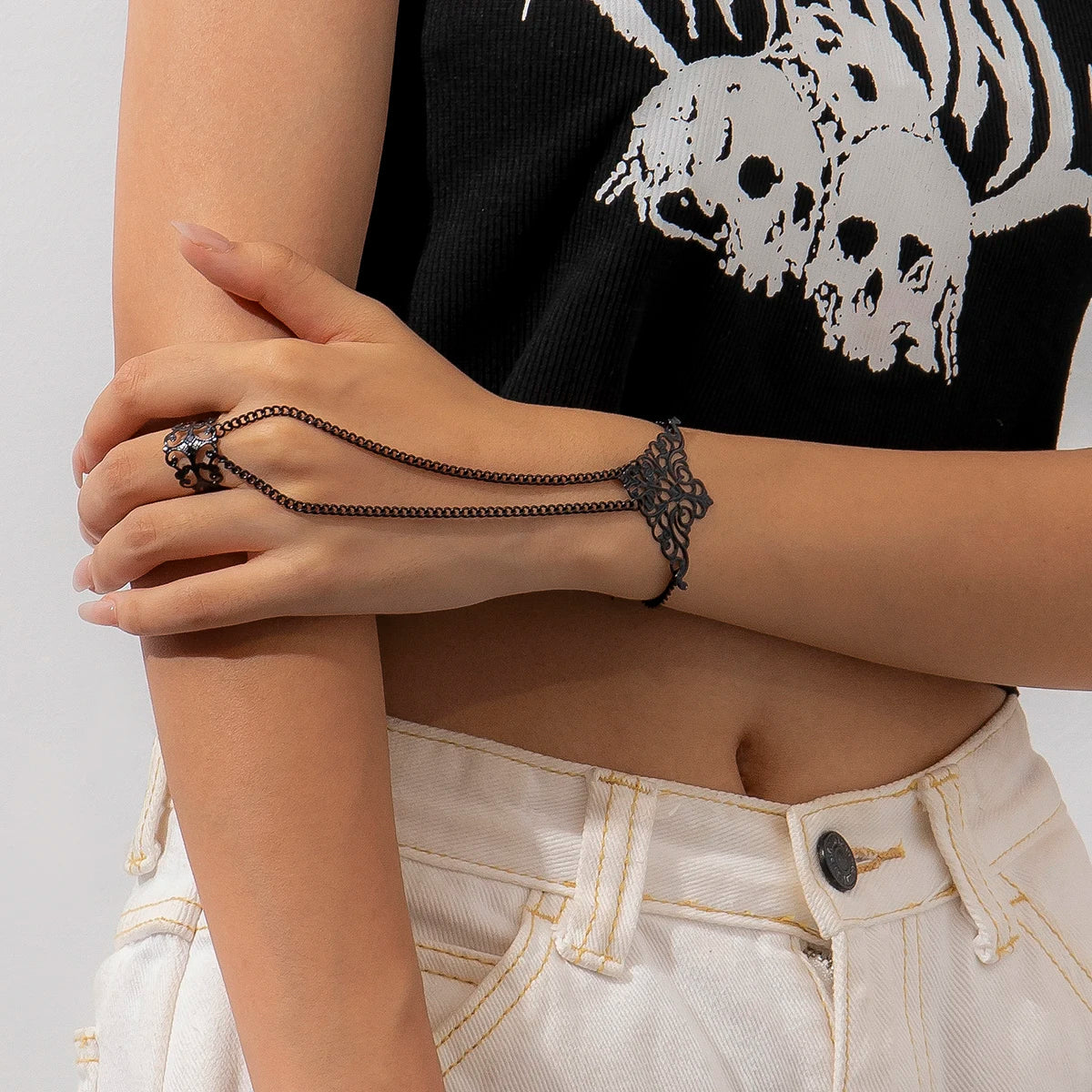 Černý gotický náramek s prstenem Zobrazit moznosti