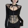 Černý gotický viktoriánský korzet s dlouhými rukávy černý