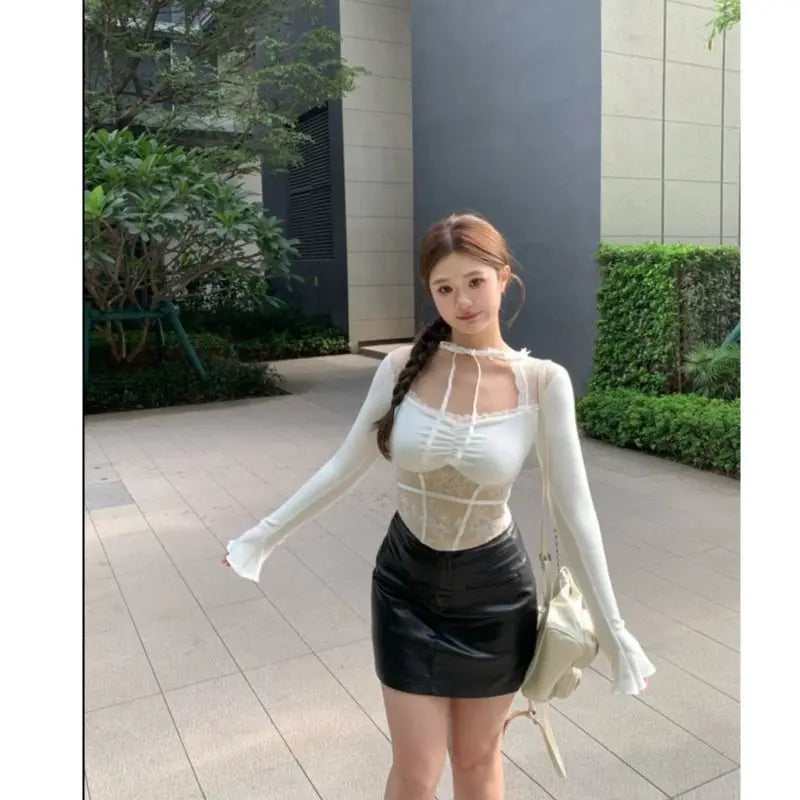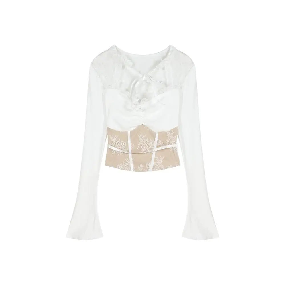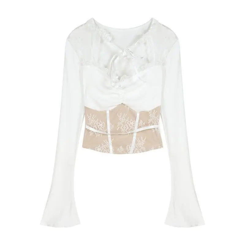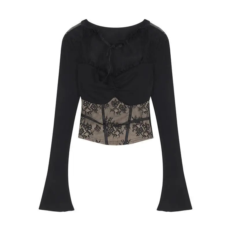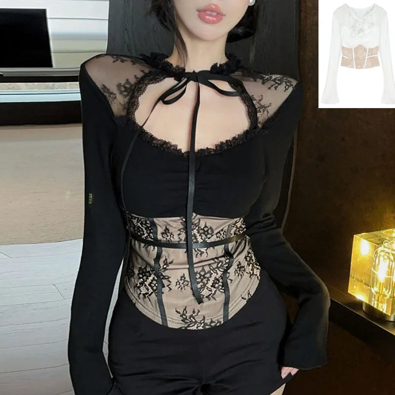 Černý gotický viktoriánský korzet s dlouhými rukávy bílý