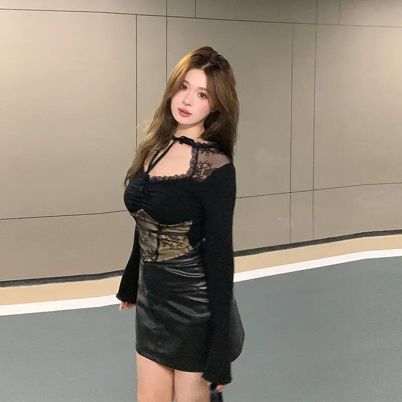 Černý gotický viktoriánský korzet s dlouhými rukávy
