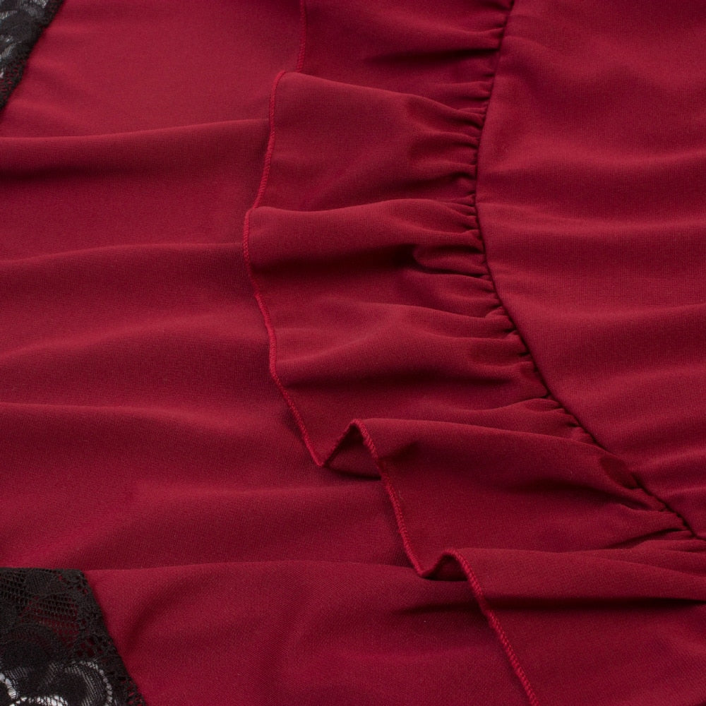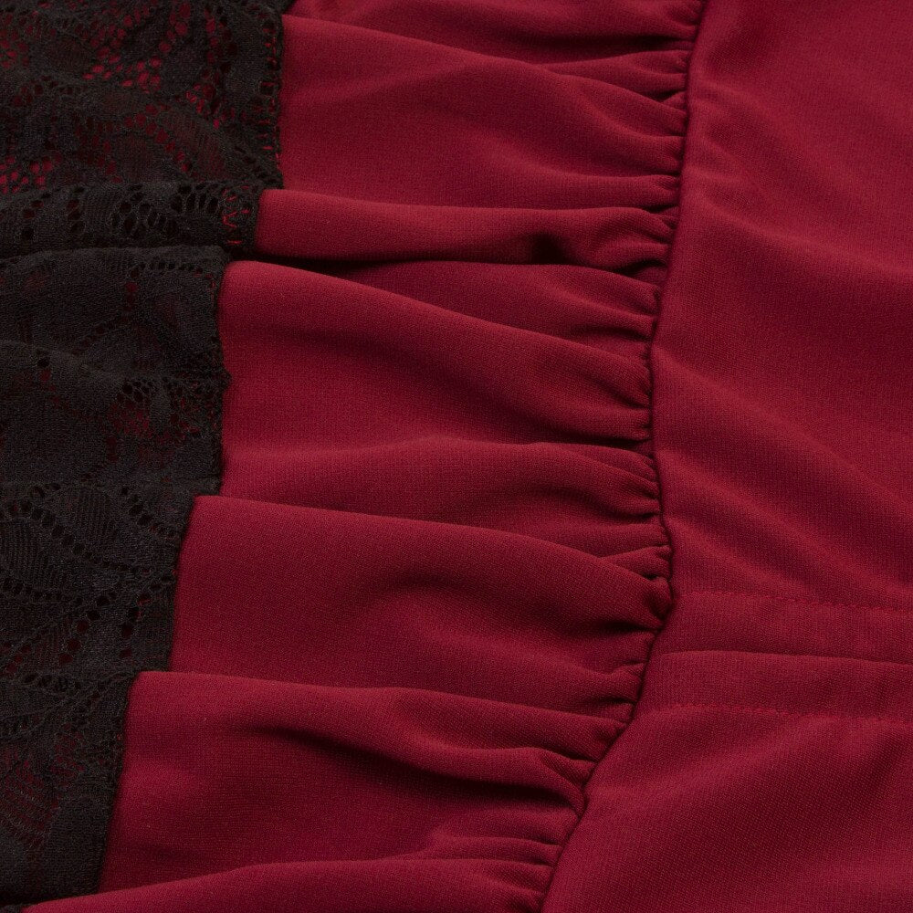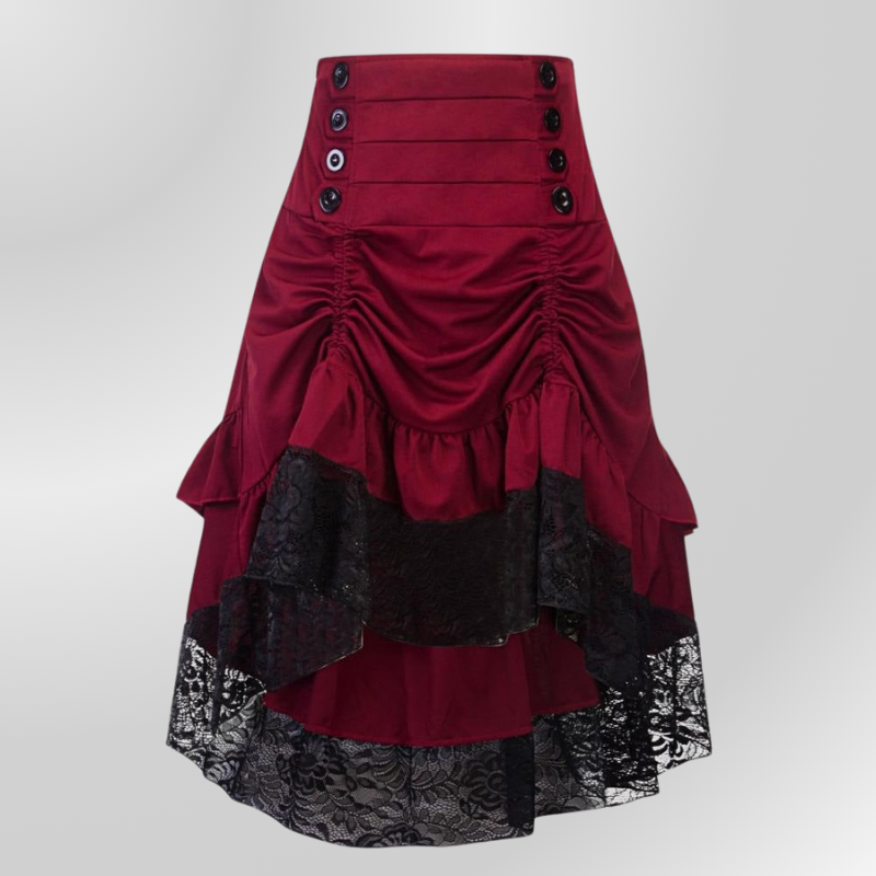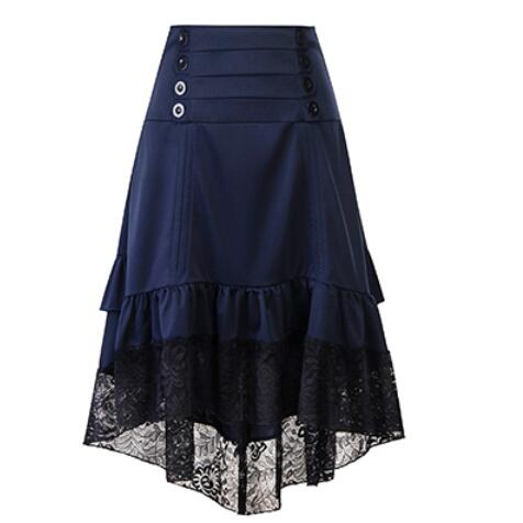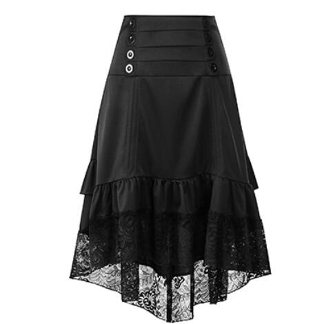 • Dekorace: volány na tkanině, černé květinové krajky, knoflíky na přední straně sukně
