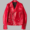 Červená kožená punková bunda ve stylu ramonesky